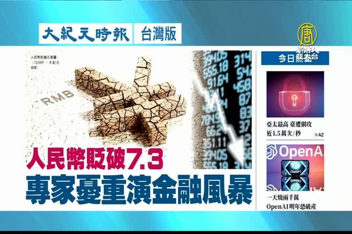 【新唐人亞太台 2023 年 08 月 17 日訊】接著看到大紀元時報台灣版報導:人民幣貶破7.3,專家憂重演金融風暴。