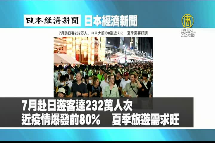 【新唐人亞太台 2023 年 08 月 17 日訊】來看到日本經濟新聞報導:夏季旅遊需求旺盛,7月份赴日遊客達到232萬人次,將近疫情爆發前的80%。