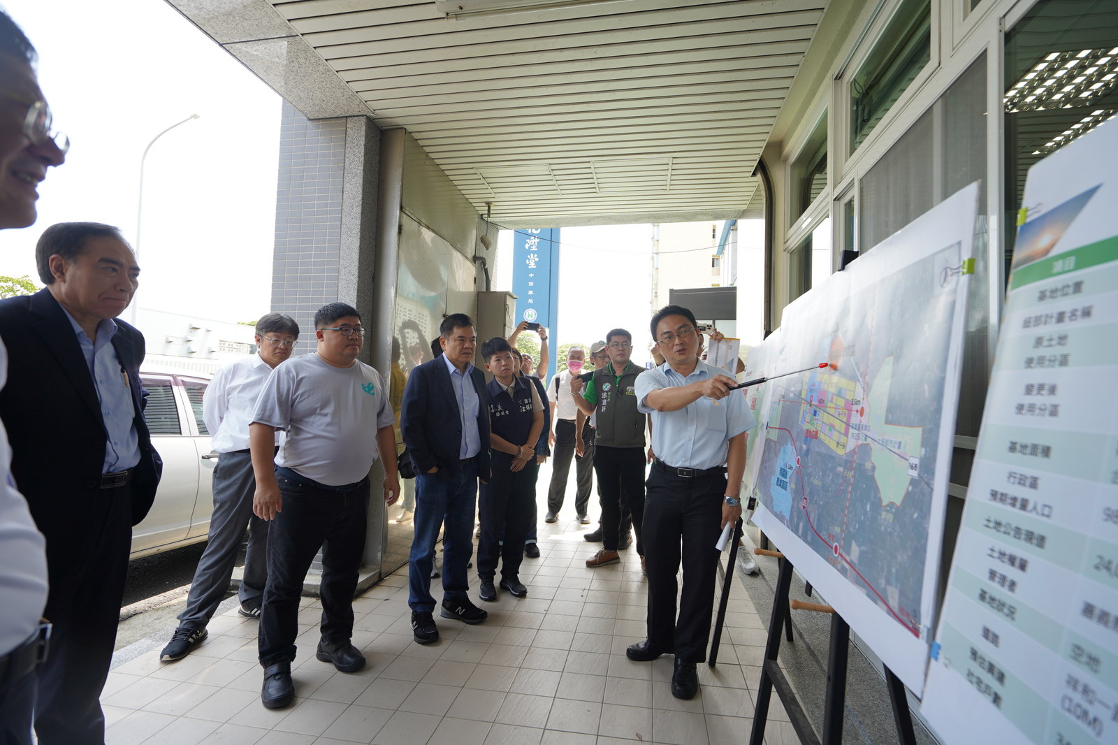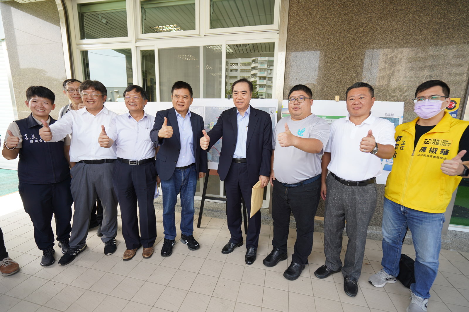 立委蔡易餘(右3)邀內政部次長吳容輝(右4)及立法院召委莊瑞雄(左5)等人,於嘉義縣治特區的朴子社宅用地會勘(立委蔡易餘辦公室提供)
