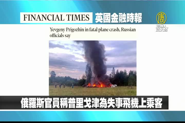 【新唐人亞太台 2023 年 08 月 24 日訊】接著是英國金融時報的報導:俄羅斯官員稱,瓦格納領導人普里格津,搭乘一架莫斯科飛往聖彼得堡的失事飛機墜毀身亡。