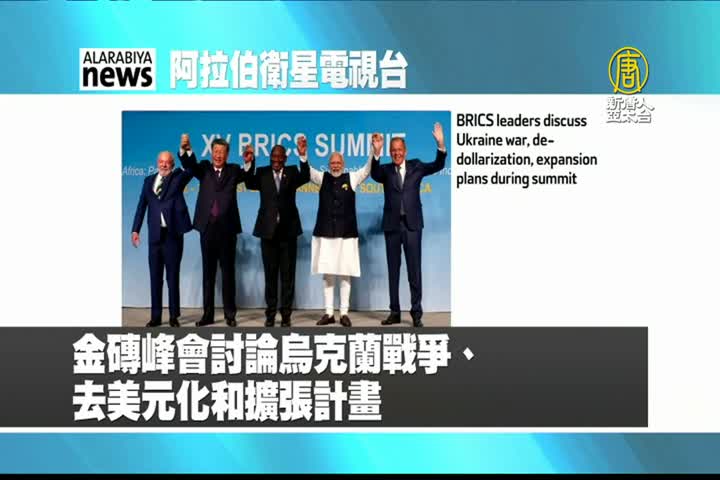 【新唐人亞太台 2023 年 08 月 24 日訊】來看到阿拉伯衛星電視台報導:金磚國家領導人,在峰會上討論烏克蘭戰爭、去美元化和擴張計畫。