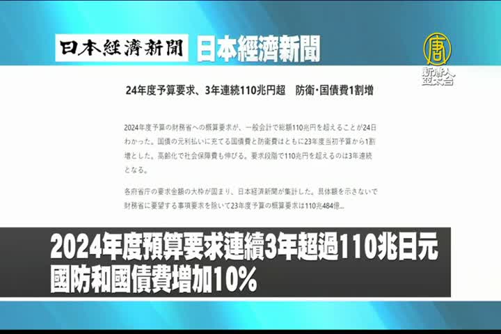 【新唐人亞太台 2023 年 08 月 25 日訊】來看到日本經濟新聞報導:日本2024年度預算要求連續3年超過110兆日元,國防和國債費增加10%。