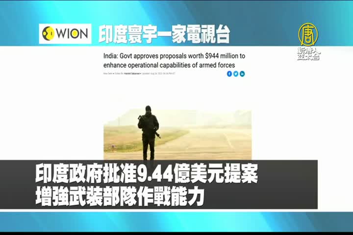 【新唐人亞太台 2023 年 08 月 25 日訊】最後是印度寰宇一家電視台報導:印度政府批准9.44億美元提案,增強武裝部隊作戰能力。