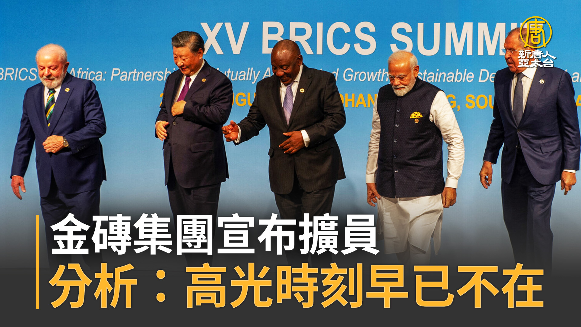【新唐人亞太台 2023 年 08 月 25 日訊】金磚五國峰會,第三天24日宣布,6國獲邀加入,包括伊朗、沙烏地阿拉伯。有分析認為,金磚國家,大多自顧不暇,即使一起抱團,影響也十分有限。