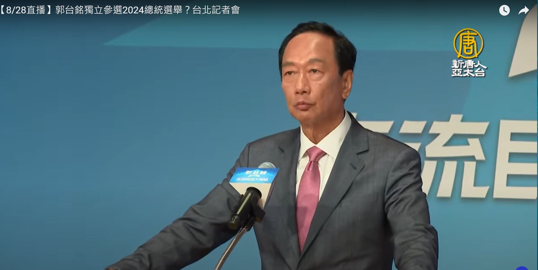 郭台銘宣布獨立參選2024總統記者會(視頻截圖)