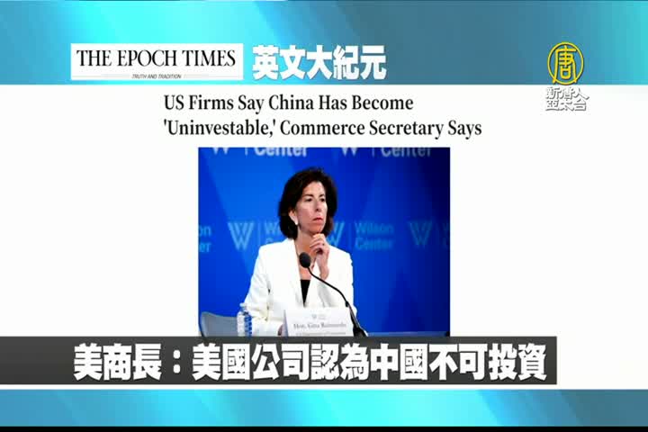 【新唐人亞太台 2023 年 08 月 30 日訊】首先來看到美國大紀元英文版報導:美國商務部長雷蒙多指出:美國公司認為中國不可投資。