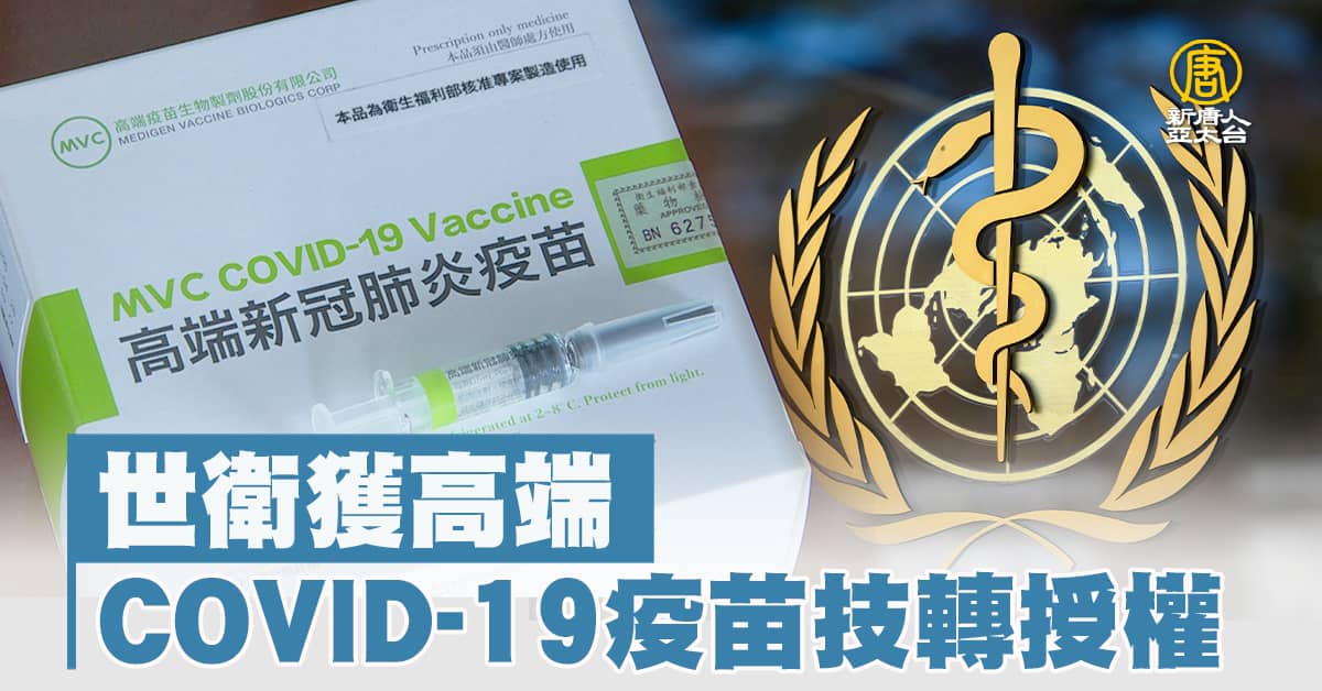 【新唐人亞太台 2023 年 08 月 30 日訊】世界衛生組織旗下COVID-19技術近用聯盟(C-TAP)和藥品專利聯盟(MPP),昨天分別宣布,取得台灣疫苗廠高端COVID-19疫苗技轉許可協議,創下全球疫苗首例,這項技術授權具有公益性,高端指出,未來C-TAP及MPP如果再授權予第三方,高端可收取合理且被授權方可負擔之授權金。
