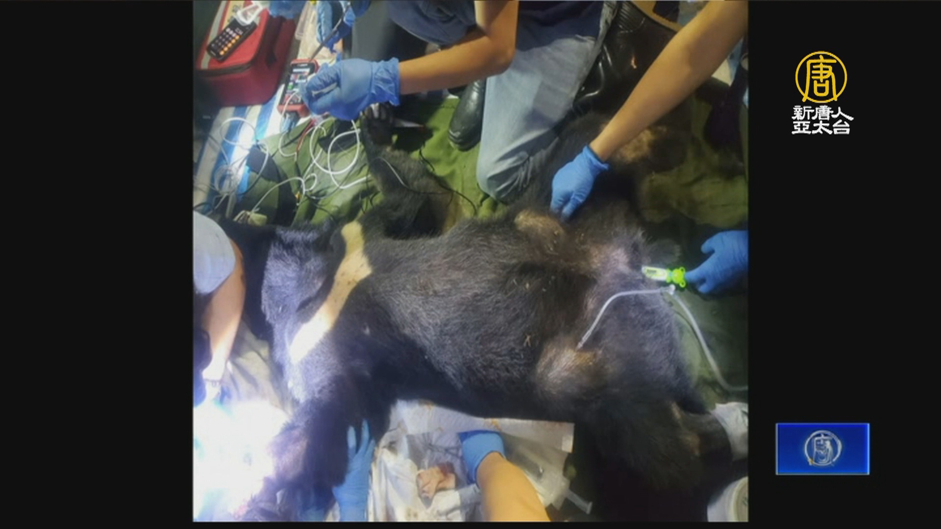 林業署救援人員獲報,會同獸醫等30人團隊,穿越崎嶇山路趕到現場後,先將黑熊麻醉、查看傷勢,發現這頭雌性黑熊,大約1歲半左右,體重卻只有34公斤,相當瘦弱。因為受困於套索,右掌腕關節以下的組織已經明顯壞死,獸醫決定立刻在現場,進行清創及截掌手術。