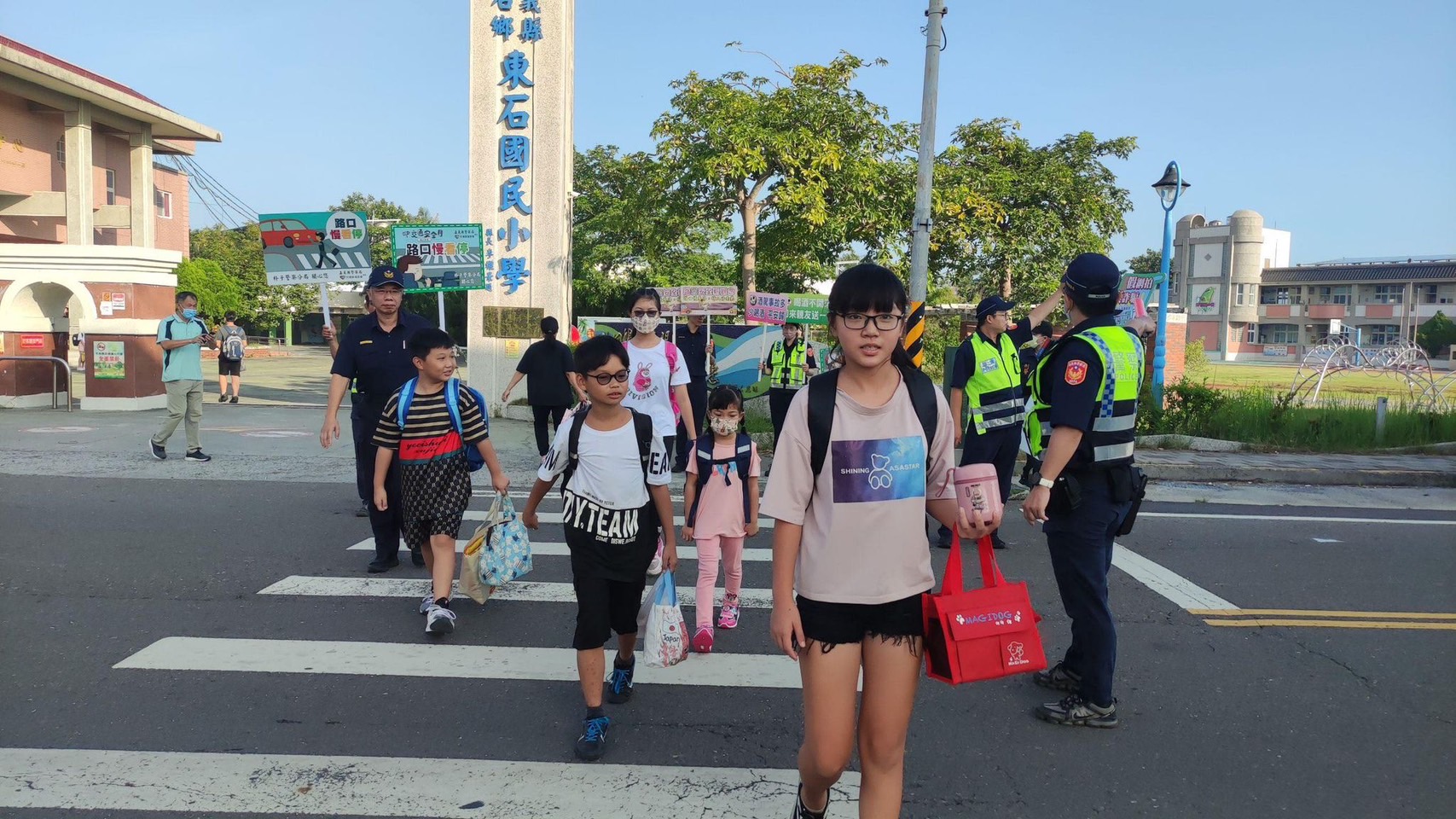 縣警局指出,開學日當天在校園發送宣導品,為學童的新學期注入滿滿的小確幸。同時也進行婦幼安全宣導、交通安全宣導,希望能增加家長和孩童的安全概念與警覺性,以守護孩童的人身安全,以及面對危害時該如何處置應變。