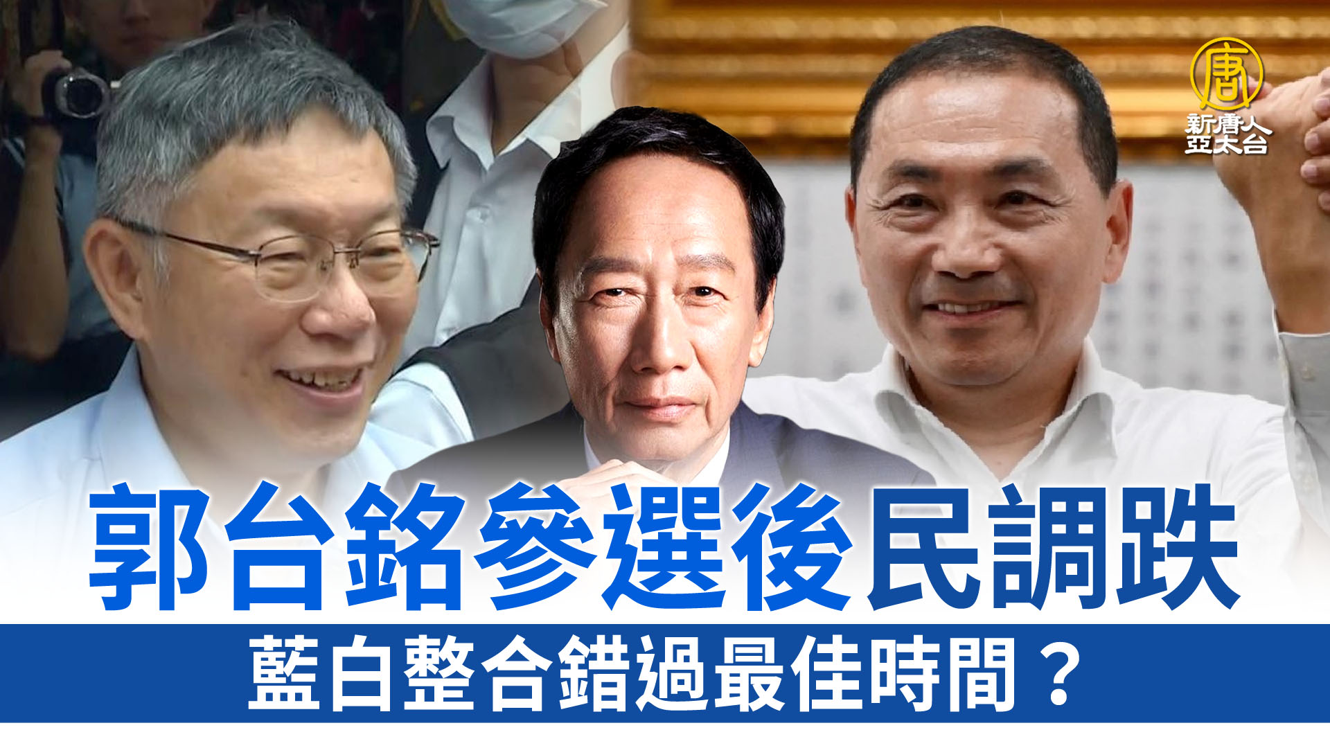 【新唐人亞太台 2023 年 08 月 31 日訊】郭台銘本週召開記者會宣布參選,與國民黨、民眾黨的整合臆測,佔據媒體版面;不過,郭台銘最新的民調卻跌破百分之十,有國民黨立委直言,藍白整合的最佳時間已經錯過。