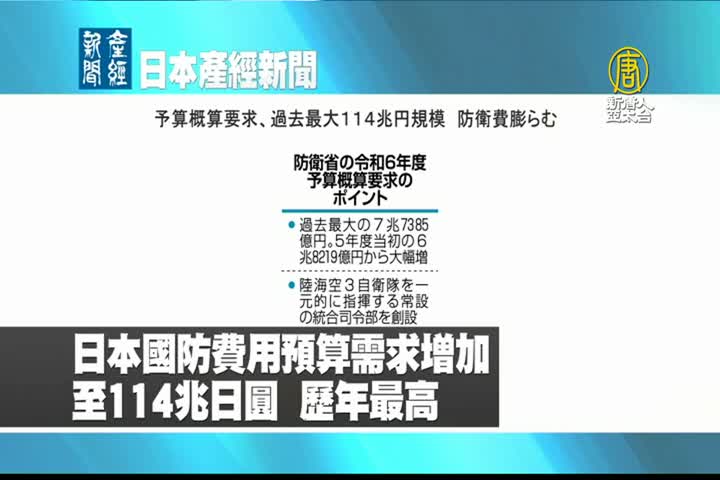 【新唐人亞太台 2023 年 09 月 01 日訊】來看到日本產經新聞報導:日本2024年度國防費用預算需求增加到114兆日圓,是歷年最高。