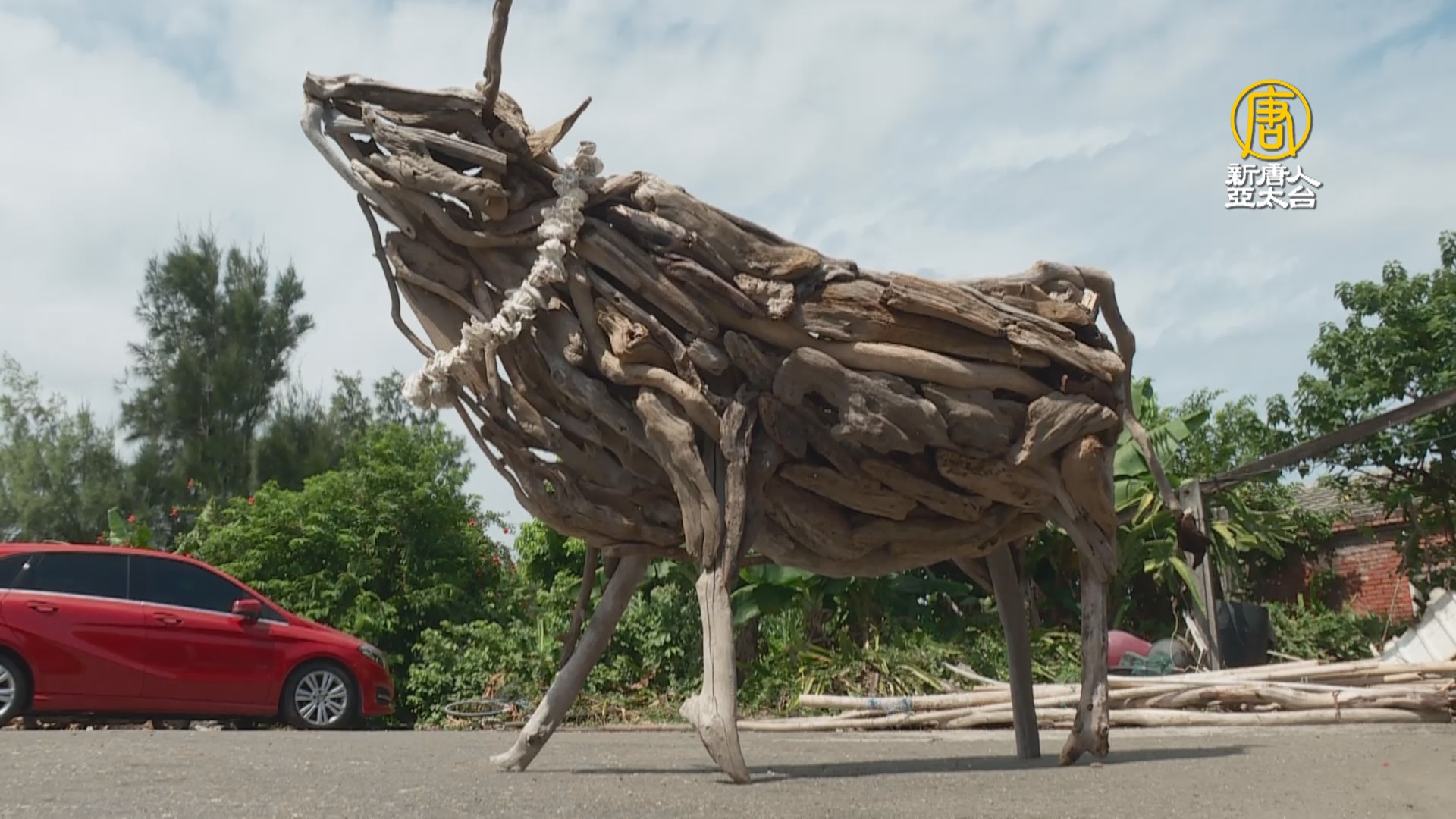 用數百根漂流木,創作的海牛形象作品,堅固到2個人坐上去也沒問題,這是素人藝術家梁仁川,花了一個禮拜的時間完成的,這次首度對外亮相。
