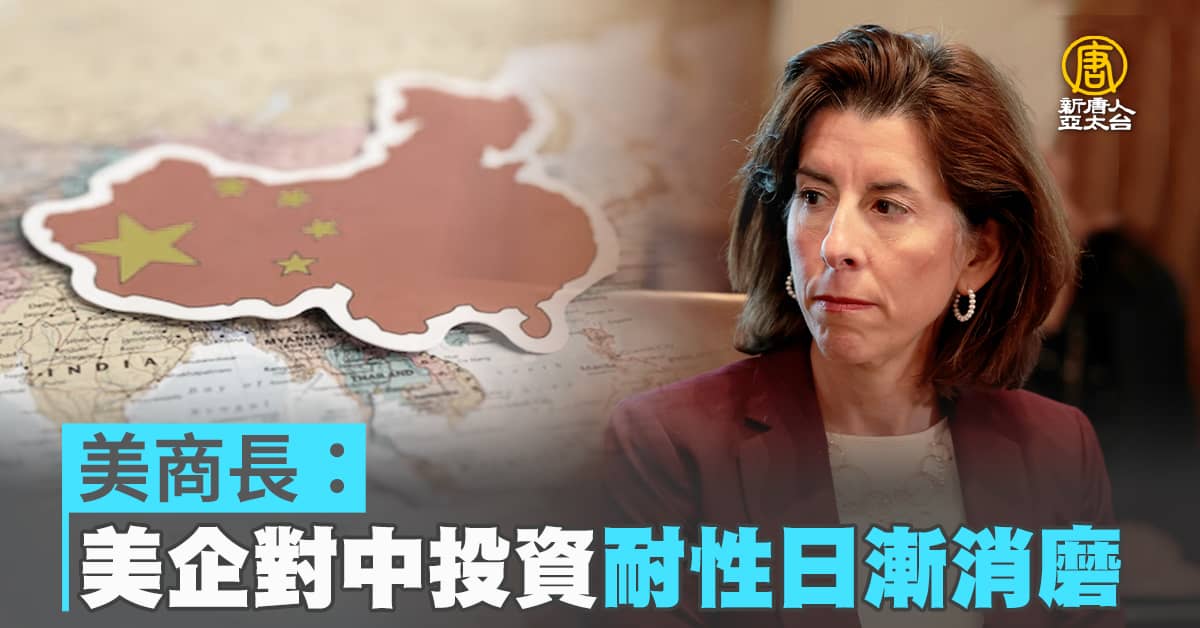 【新唐人亞太台 2023 年 09 月 04 日訊】再來關注,美國商務部長雷蒙多結束訪問中國行程後,雷蒙多公開表示,美國企業對拓展中國市場的耐性正在消磨,她強調,在中國的美國企業,應當獲得公平競爭,及可預測的市場環境。
