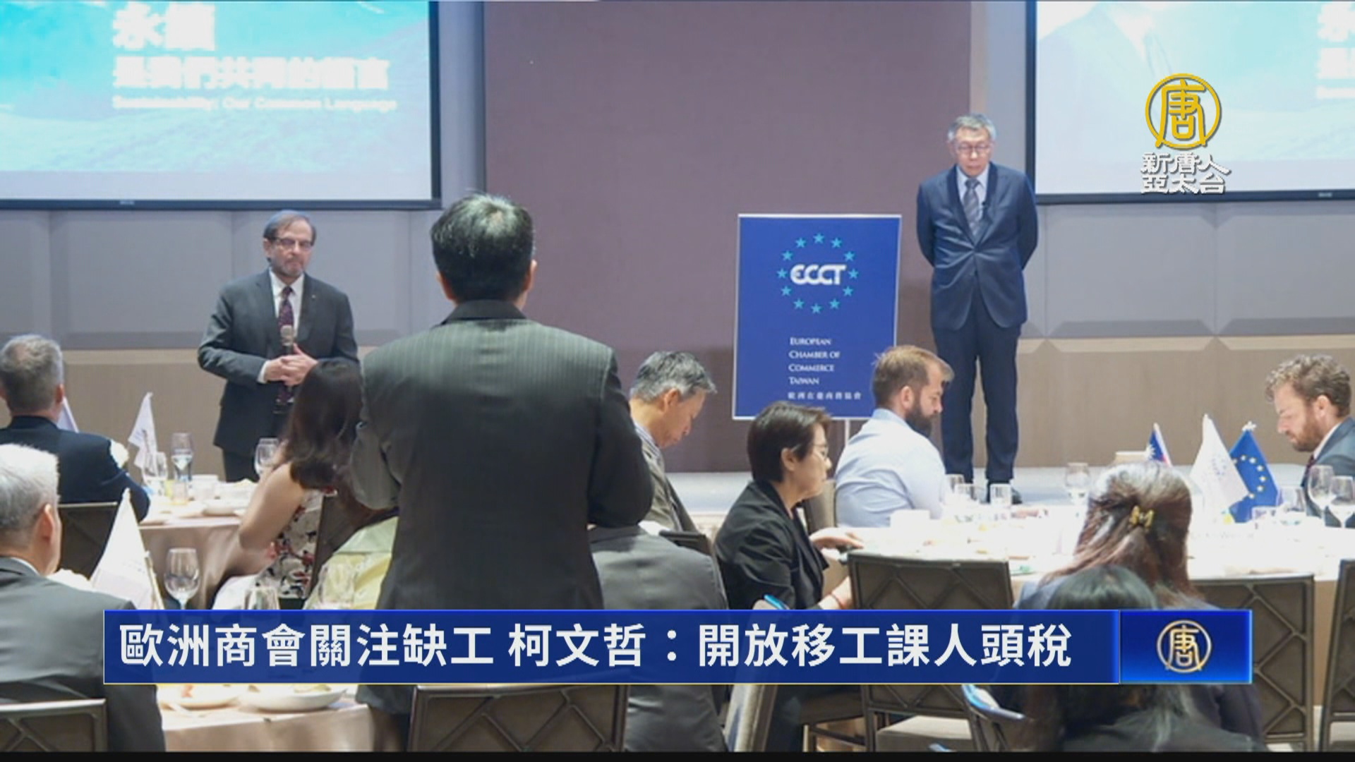 【新唐人亞太台 2023 年 09 月 04 日訊】帶您看到,歐洲商會致力於強化台灣與歐盟的雙邊投資、經貿關係,在今天舉辦的午餐宴上,邀請民眾黨總統參選人柯文哲發表演說,在現場問答環節,歐洲商會關注,台灣面對缺工,如何吸引外籍人才的議題。