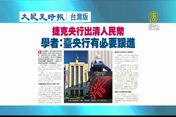【新唐人亞太台 2023 年 09 月 05 日訊】接著看到大紀元時報台灣版報導:捷克央行出清人民幣,學者表示台灣央行有必要跟進。