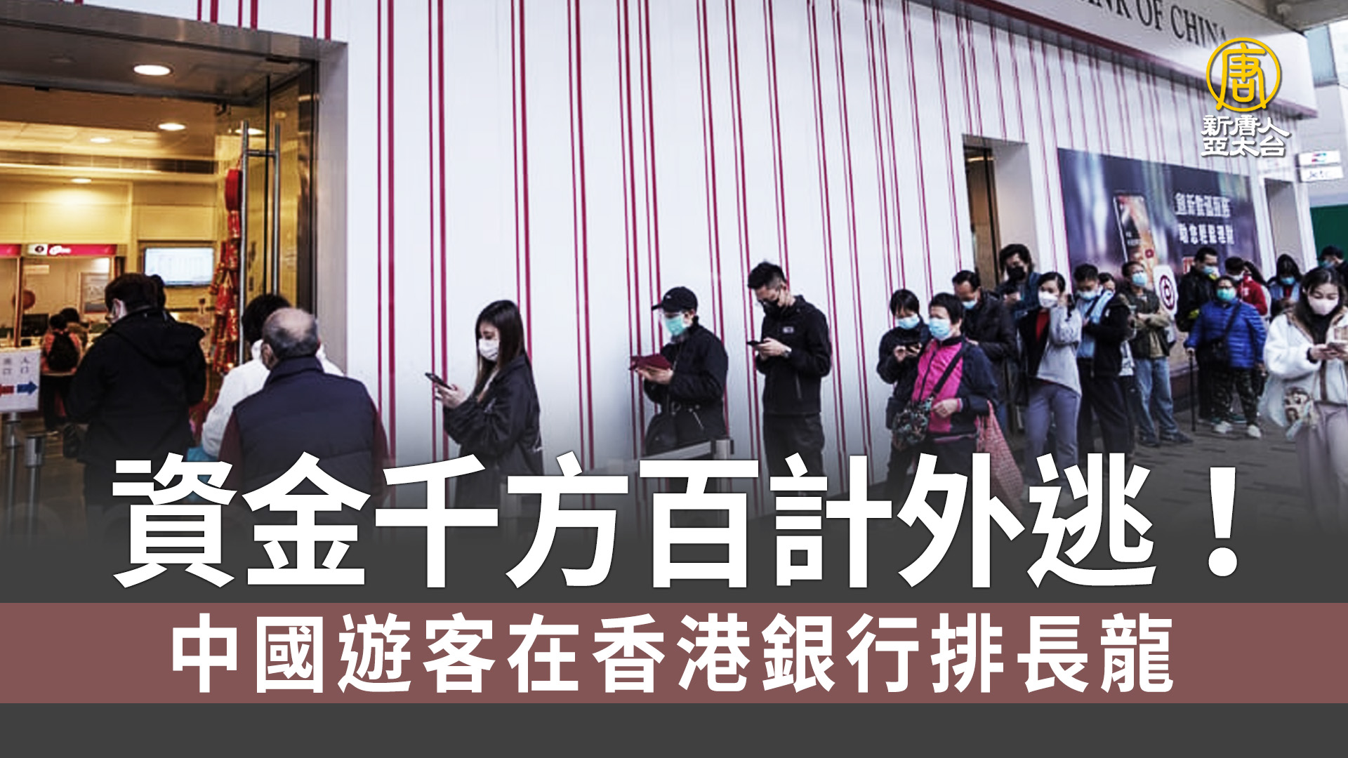 由於中國大陸經濟停滯、人民幣貶值、信託投資爆雷、房地產危機蔓延,更多大陸人千方百計把資金調出境外,本週香港銀行分行外排起了長隊,排隊人群都是來自中國大陸的遊客,等待購買保險或進行其它理財方式來轉移資金。