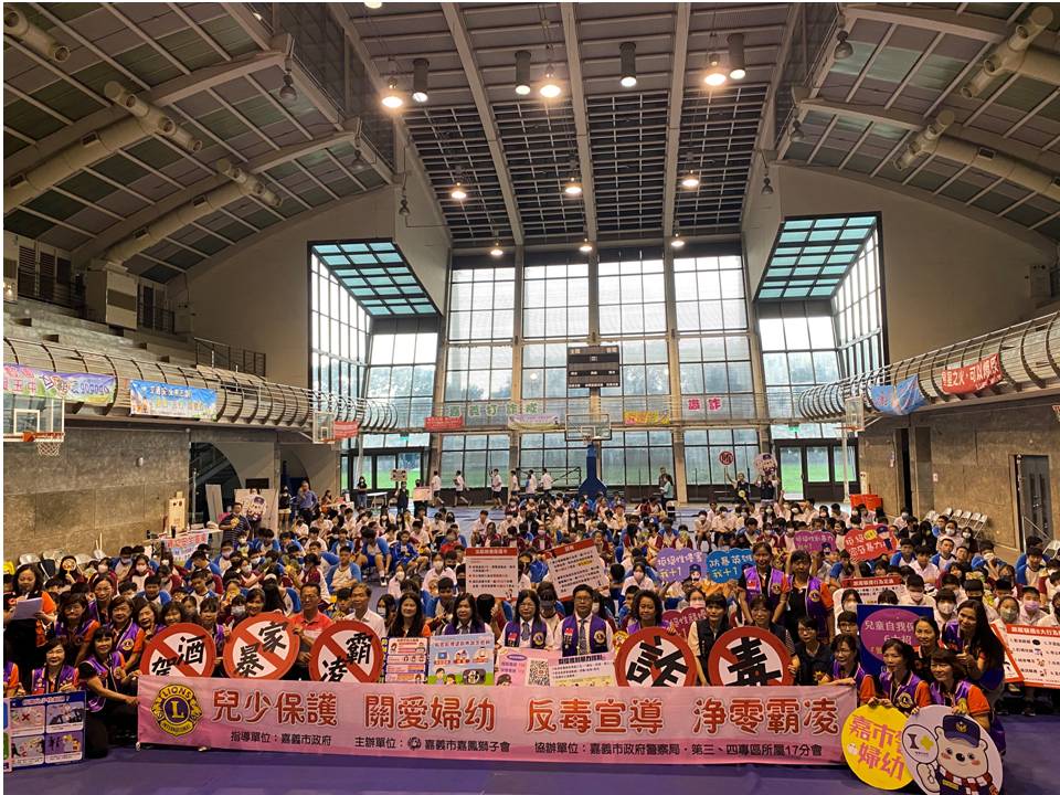 為關懷婦幼、保護兒少,落實性別平等及反毒教育,嘉義市警察局結合市政府社會處、玉山國中、國際獅子會300E-1區、嘉鳳獅子會、嘉義地區17分會,在玉山國中舉辦拒絕性別暴力、反毒宣導等活動。