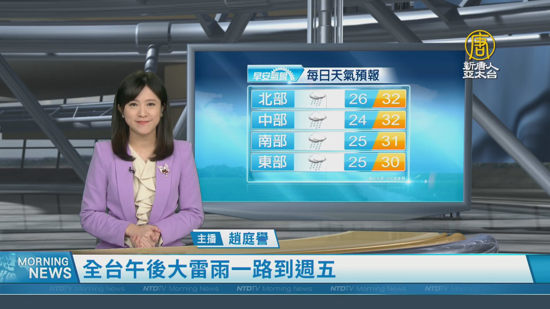 【新唐人亞太台 2023 年 09 月 07 日訊】歡迎您收看9月7日的早安新唐人,我是,先來帶您關心天氣。昨天多地出現午後大雷雨,提醒您,到週五前,各地天氣不穩。週末後雨勢趨緩,一直到下週一全台才回歸多雲到晴。帶您一起來看到國際媒體重要訊息。