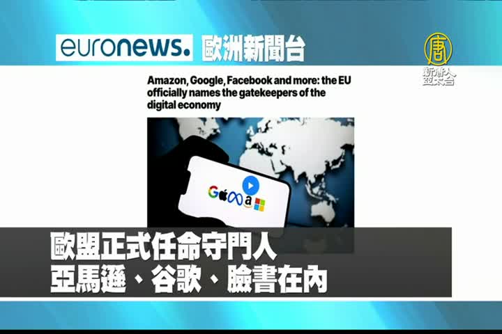 【新唐人亞太台 2023 年 09 月 07 日訊】來看到歐洲新聞台報導:歐盟正式任命守門人,包括亞馬遜、谷歌、臉書在內。