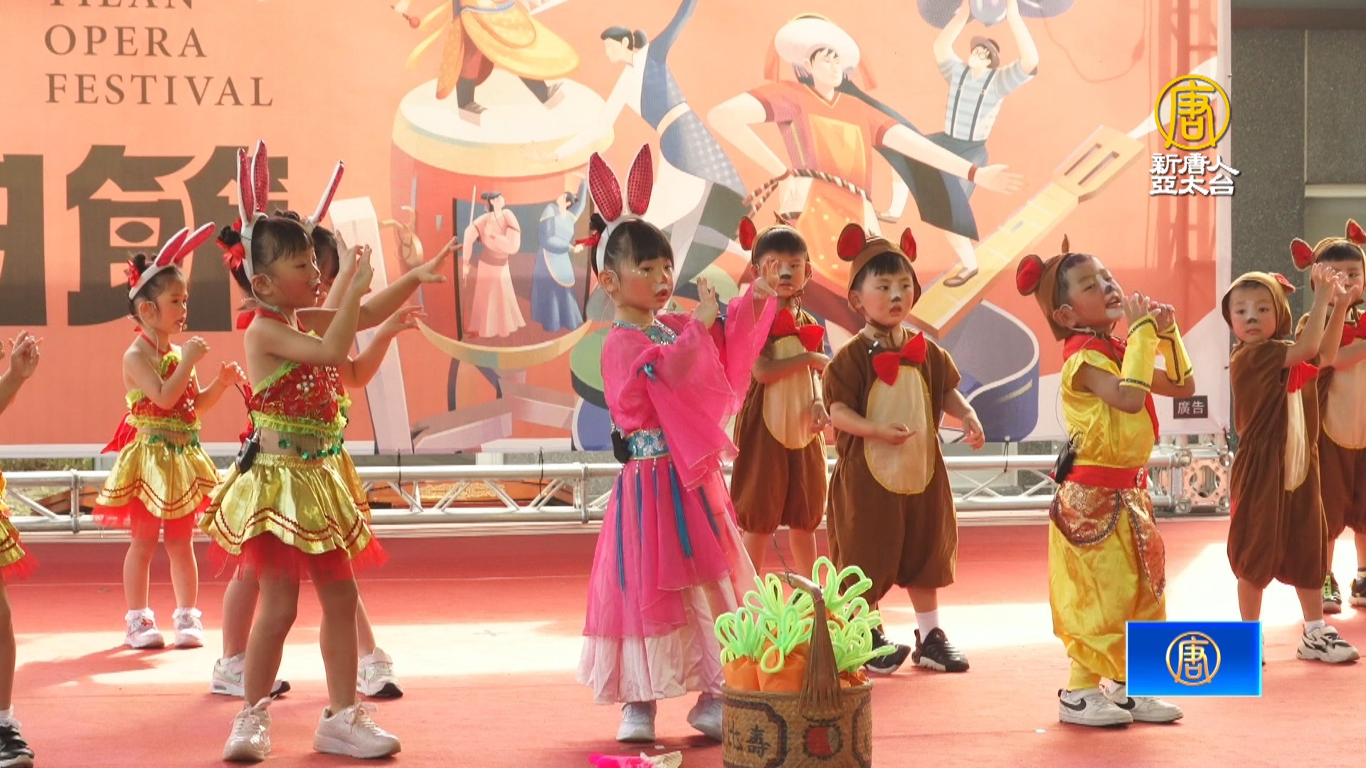 宜蘭國小附設幼兒園小小歌仔戲社團,18位小小歌仔戲演員上場,演出孫悟空、玉兔公主還有眾多的小狗與小猴,每一位都是自願參加。