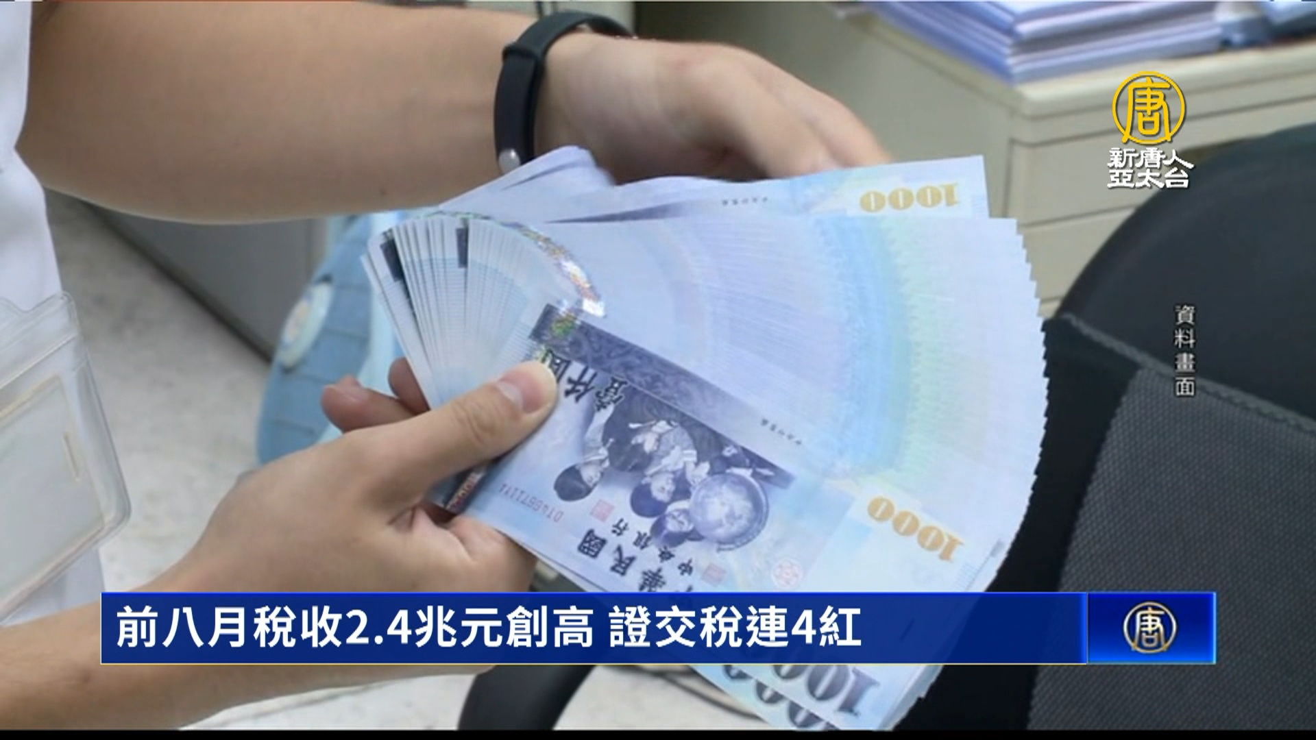 【新唐人亞太台 2023 年 09 月 12 日訊】財政部今天公布8月全國賦稅收入新台幣1703億元,累計前八月總稅收2兆4,581億元,創新高,年增8.7%。而象徵台股動能的證交稅,8月實徵221億元,年增56.1%,連續四月正成長。