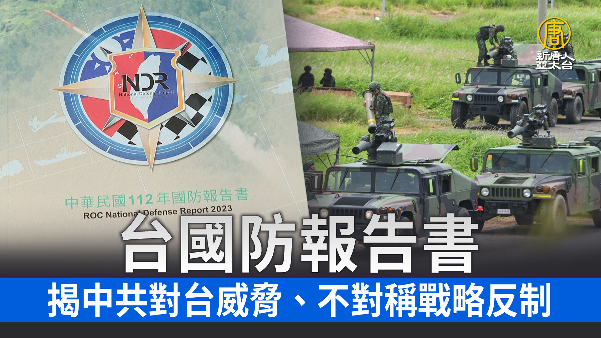 【新唐人亞太台 2023 年 09 月 12 日訊】中華民國國防部今天發佈112年國防報告書,說明區域情勢與台灣面臨中共威脅,以及國軍的國防戰力與建軍規劃。
