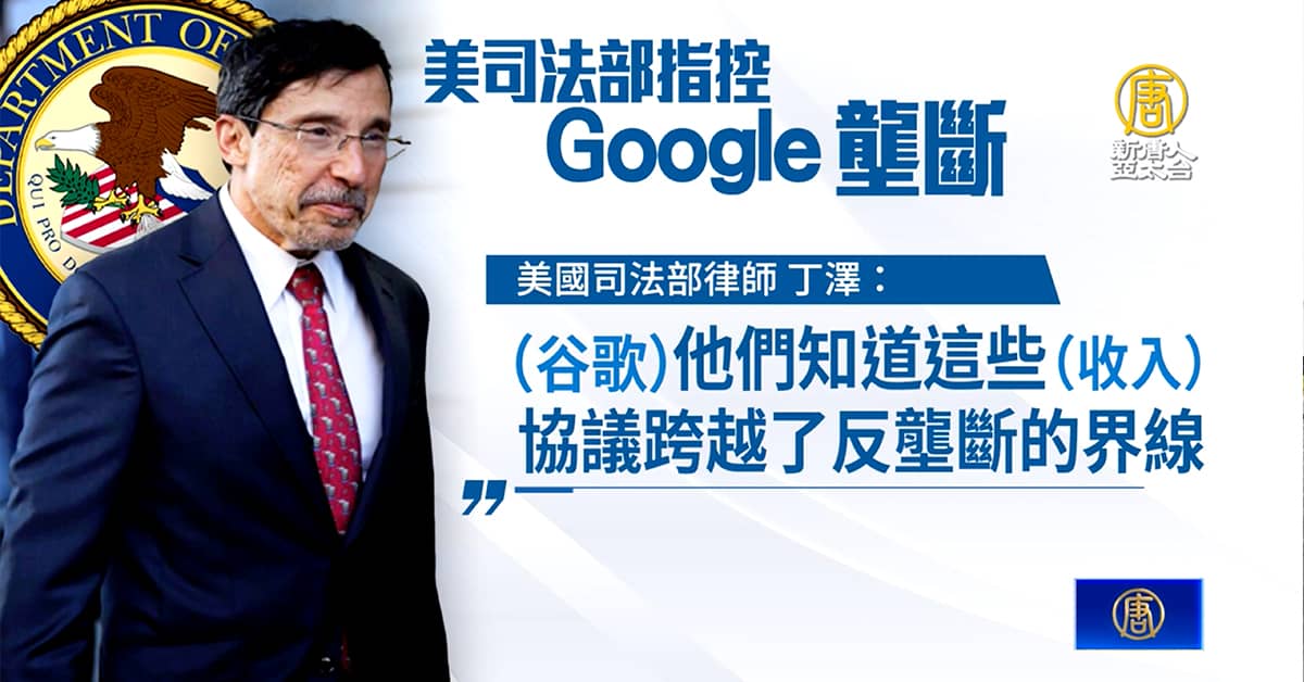 【新唐人亞太台 2023 年 09 月 13 日訊】史上最大反壟斷案,正在美國法庭攻防。美國司法部與多州檢察長,控告Google涉嫌違反美國反壟斷法。12號在美國華府的聯邦法院首度開庭。外界推估Google最糟將面臨公司拆解的命運。