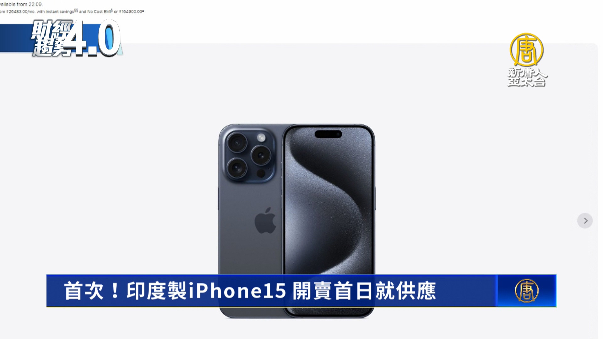 【新唐人亞太台 2023 年 09 月 16 日訊】接著帶您關心,蘋果年度新機iPhone 15發表,外媒報導,隨著印度生產力提升,今年蘋果首度在新品發布當天,開始銷售「印度製造」iPhone 15,外媒分析,這將是蘋果在全球供應鏈重要的里程碑。