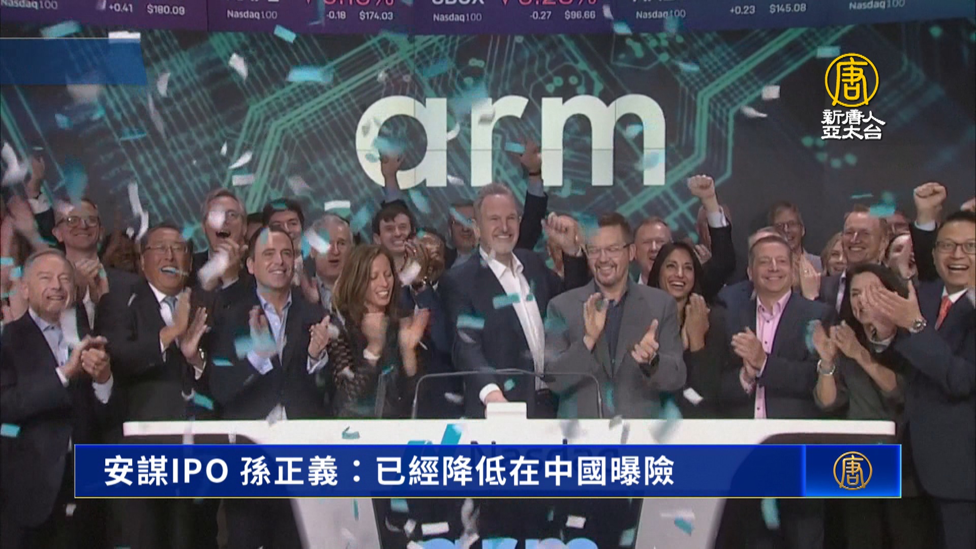 【新唐人亞太台 2023 年 09 月 16 日訊】大廠安謀 (Arm) 正式掛牌交易,首日IPO交出亮眼成績,不過外媒也聚焦,安謀未來營運成長性,尤其在中國營收比重較高,對此軟銀創辦人孫正義也做出回應。