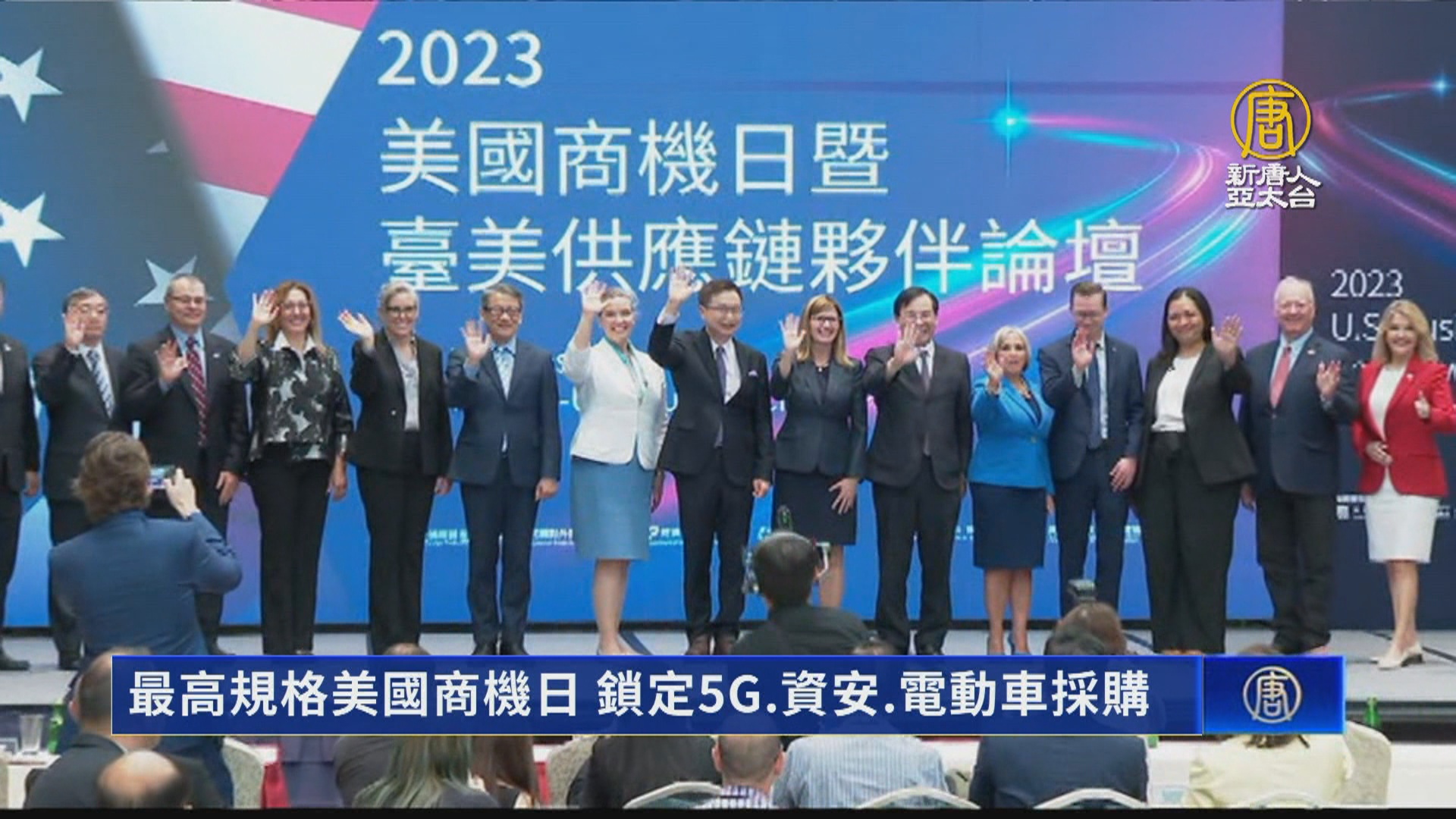 【新唐人亞太台 2023 年 09 月 19 日訊】美國商機日暨台美供應鏈夥伴論壇今天(19日)舉行,台美雙方高度重視,由美國商務部副部長領軍參加。採購內容聚焦5G、資安和電動車產業。才剛上任的亞利桑那州長也出席活動,是否與台積電見面,格外受到關注。