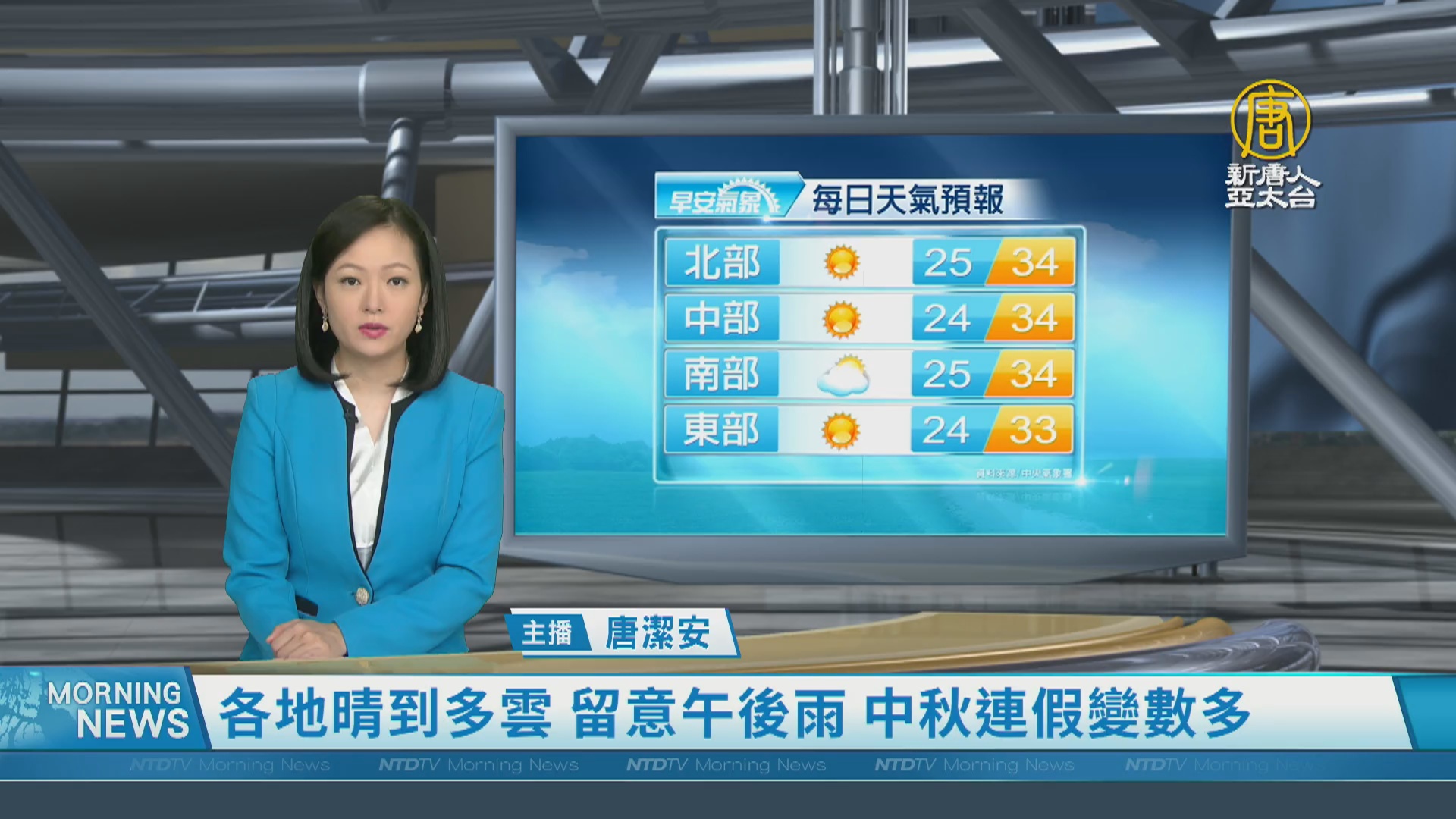 【新唐人亞太台 2023 年 09 月 20 日訊】歡迎您收看9月20日的早安新唐人,我是唐潔安,先來帶您關心天氣。今天上午,全台各地仍是晴到多雲,不過,午後對流發展旺盛,降雨範圍會稍微增大,另外,菲律賓東方海面處於低壓帶,是否有發展成颱風的可能性、影響中秋連假,還需持續觀察追蹤。帶您一起來看到國際媒體重要訊息。