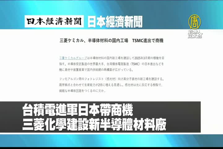 【新唐人亞太台 2023 年 09 月 25 日訊】來看到日本產經新聞報導:台積電進軍日本帶來商機,三菱化學建設新半導體材料廠,預計2025年3月營運。