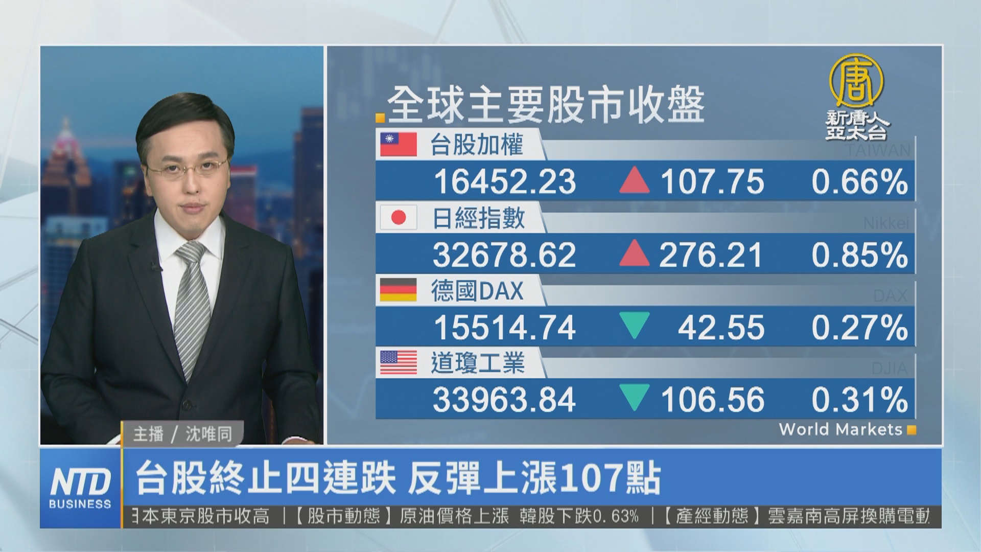 【新唐人亞太台 2023 年 09 月 25 日訊】美國聯準會利率決策公布後,市場預期利率將持續攀升一段時間,美股主要股市上週五收黑,台股上週連續四天下跌,今天週一反彈上漲,盤中一度大漲逾150點,收盤上漲107.75點,權值股台積電小漲作收,聯發科開低走高,世芯-KY重奪股王,AI股緯創、緯穎雙雙收紅,外資賣超30億,三大法人合計賣超9.46億元。