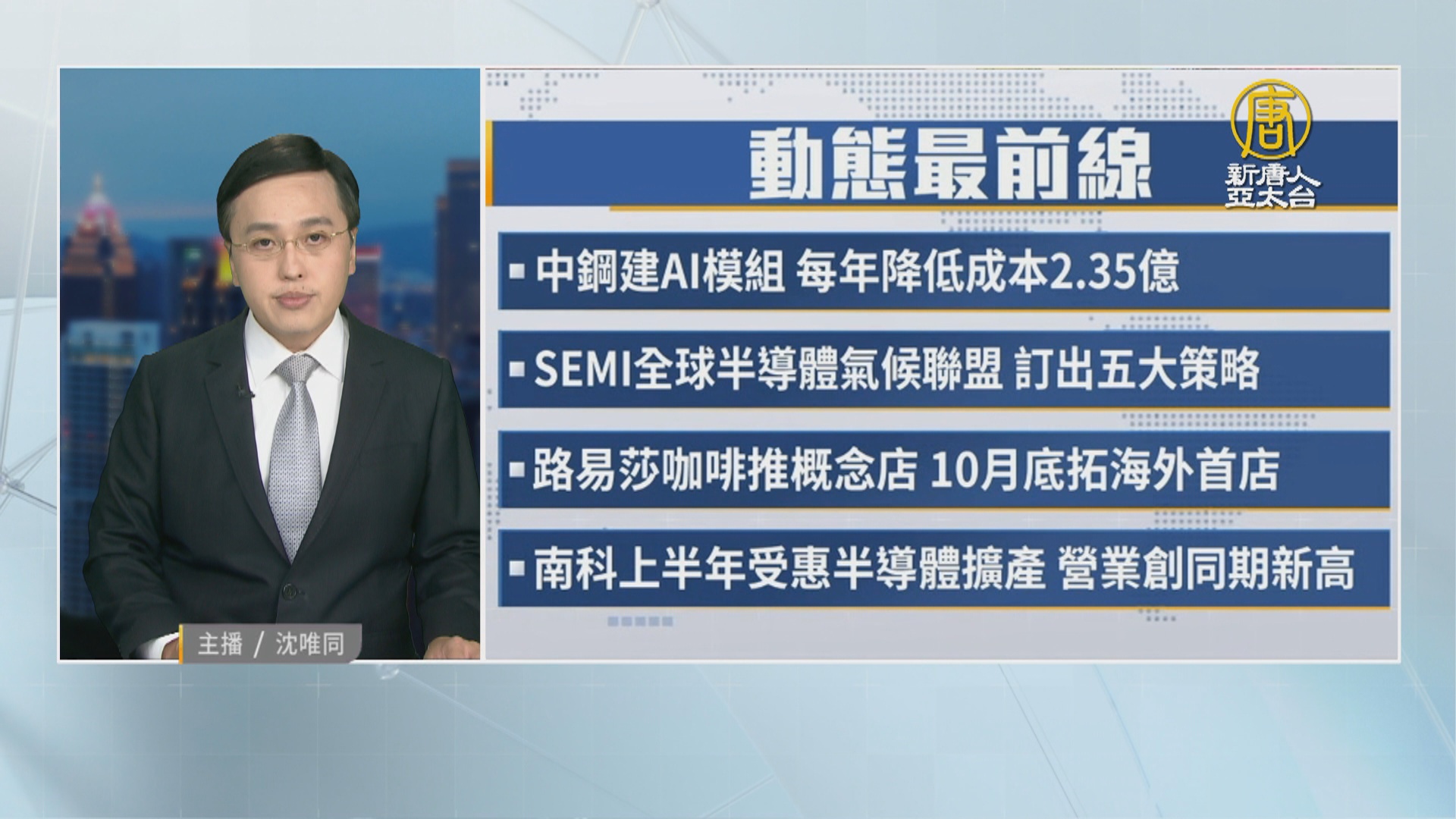 【新唐人亞太台 2023 年 09 月 27 日訊】帶您看到今天的產業動態。中鋼自行打造AI研發團隊,並開發27個AI模組,能精準掌握高爐狀態與即時調適生產,每年可降低成本2.35億元,AI影像辨識系統,可達98%以上的辨識率;SEMI全球半導體氣候聯盟發表第一份,半導體產業生態圈的溫室氣體排放量白皮書,以五大策略,邁向淨零碳排;連鎖咖啡業者路易莎咖啡,進行品牌升級,預計10月底開出海外首店,目標每年台灣新增80家據點;南科管理局表示,延續去年穩健營運佳績,2023上半年在積體電路產業支持下,營業額達6,769.89億元,比去年同期成長3.81%、貿易總額成長10.05%。