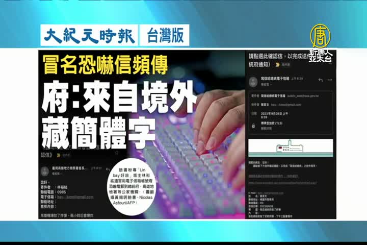【新唐人亞太台 2023 年 09 月 28 日訊】接著看到大紀元時報台灣版報導:冒名恐嚇信頻傳,總統府表示來自境外,藏簡體字。