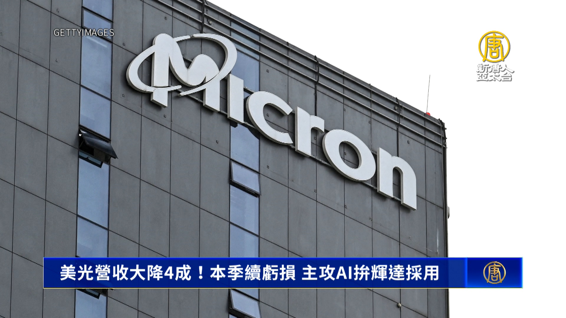 【新唐人亞太台 2023 年 09 月 30 日訊】美國記憶體大廠美光,上季財報營收驟降4成,毛利率轉為負9.1%,本季財測預估將持續虧損,公司坦言今年對記憶體產業極具挑戰,不過公司著眼AI市場機會,開發HBM晶片,已經送樣輝達,有望獲得採用。