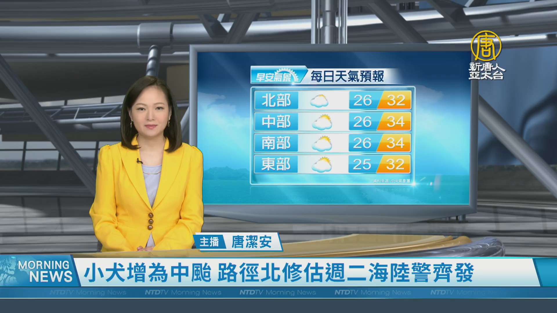 【新唐人亞太台 2023 年 10 月 02 日訊】歡迎您收看10月2日的早安新唐人,我是唐潔安,先來帶您關心天氣。「小犬」颱風逐漸增強,昨晚已經升級為中度颱風,加上路徑北修,對台灣的影響持續增加當中。氣象署最快明天清晨至上午發布海警、明天下午至晚間發布陸警,星期三至星期五,颱風影響台灣最明顯。帶您一起來看到國際媒體重要訊息。