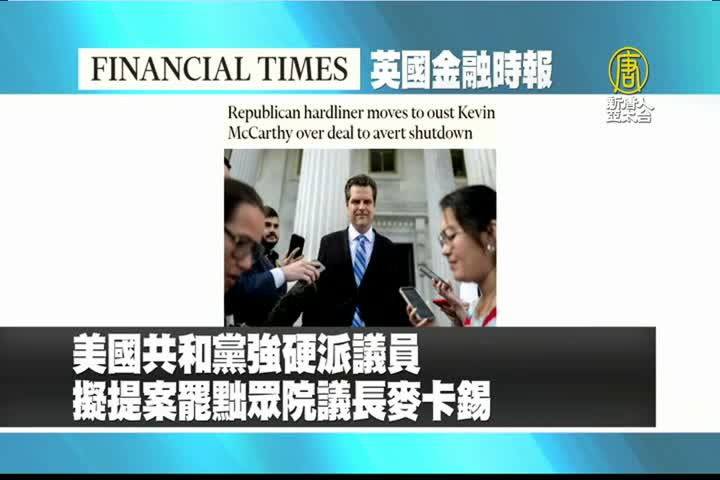 【新唐人亞太台 2023 年 10 月 02 日訊】接著是英國金融時報的報導:不滿與民主黨人達成協議,美國共和黨強硬派議員擬提案罷黜議長麥卡錫。