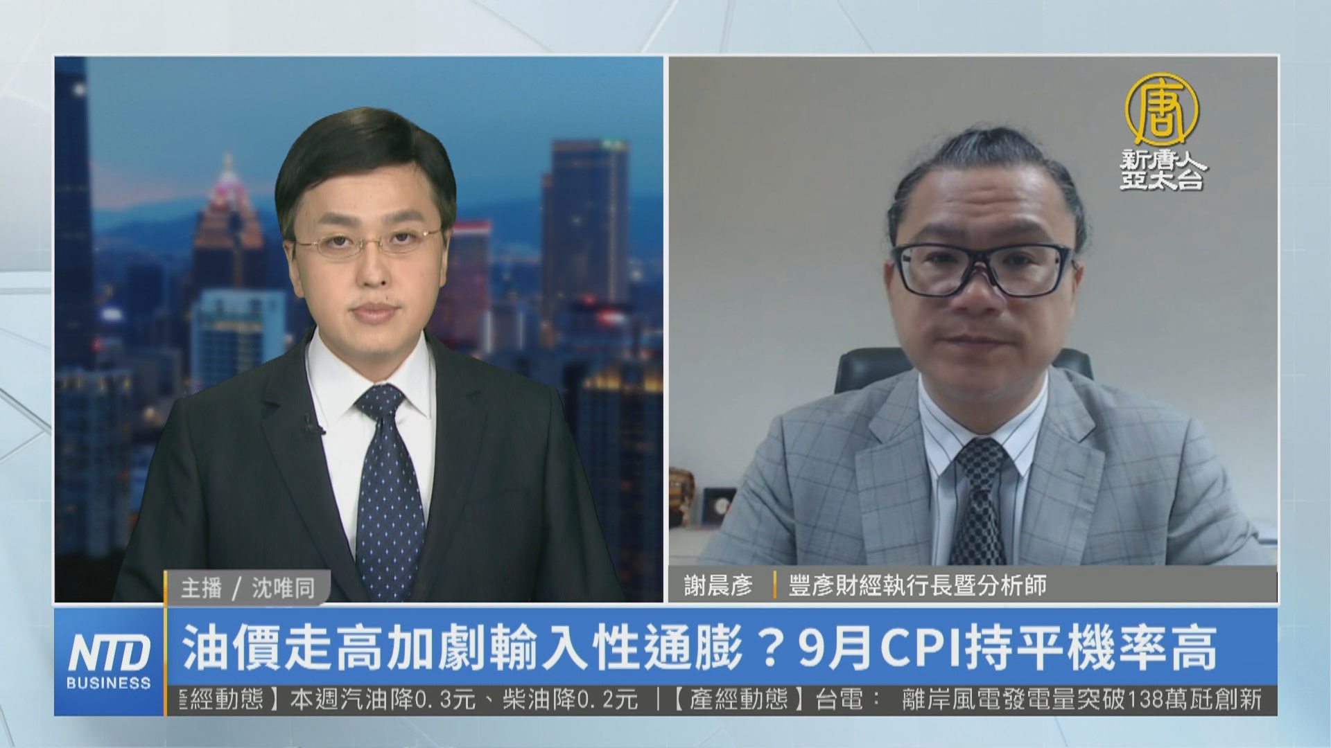 【新唐人亞太台 2023 年 10 月 02 日訊】本週主計總處,要公布9月的CPI,各國的通膨,直接影響到貨幣政策的走向,我們請教資深分析師謝晨彥,上一次台灣8月份CPI,本來以為要回落,結果又上升,最近期國際油價像布蘭特原油,分析師預期,第四季可能上看100美元,服務類薪資維持強勁,台灣的通膨是否還有可能會持續升高?請教您的觀察。