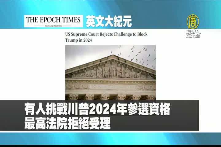 【新唐人亞太台 2023 年 10 月 03 日訊】首先來看到美國大紀元英文版報導:有人挑戰川普2024年參選資格,最高法院拒絕受理。