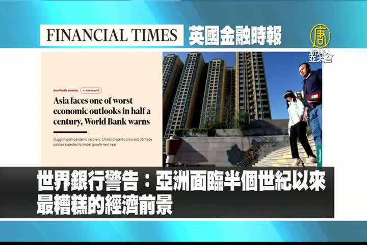 【新唐人亞太台 2023 年 10 月 03 日訊】接著是英國金融時報的報導:世界銀行警告,亞洲面臨半個世紀以來最糟糕的經濟前景。