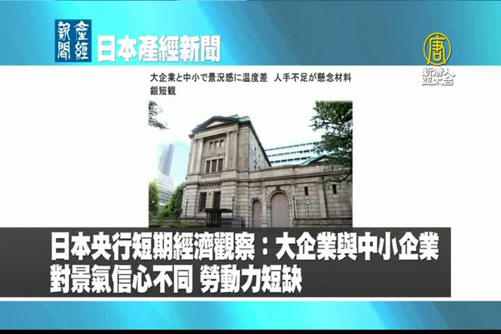 【新唐人亞太台 2023 年 10 月 03 日訊】來看到日本產經新聞報導:日本央行短期經濟觀察指出,大企業與中小企業對於景氣信心不相同;另外,勞動力持續短缺。