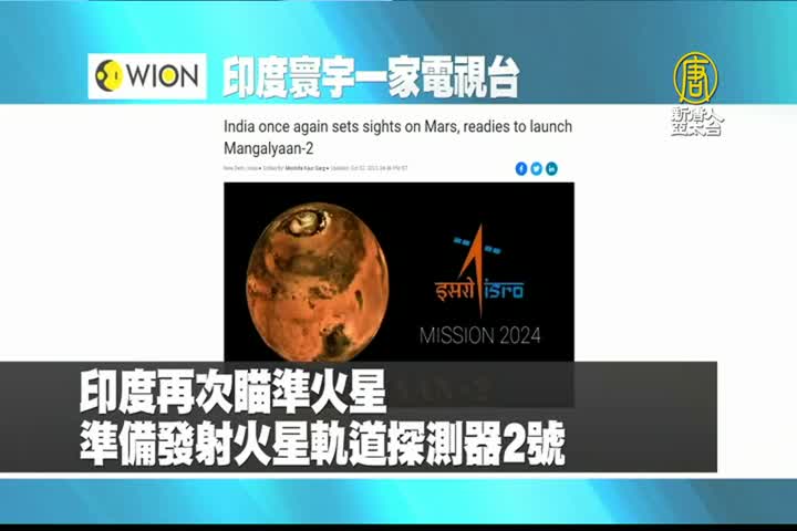 【新唐人亞太台 2023 年 10 月 03 日訊】最後是印度寰宇一家電視台報導:印度再次瞄準火星,準備發射火星軌道探測器2號。
