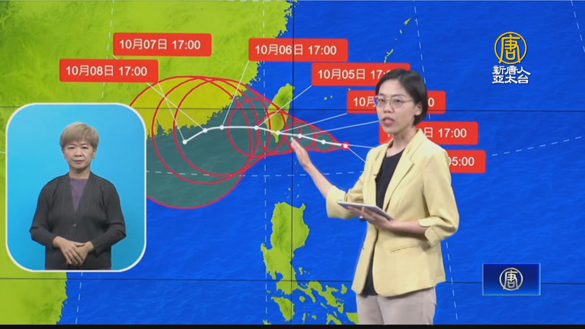 中央氣象署資深預報員 朱美霖:「4號深夜到5號開始,颱風它由的南段陸地到巴士海峽這一帶通過的機率較高。」