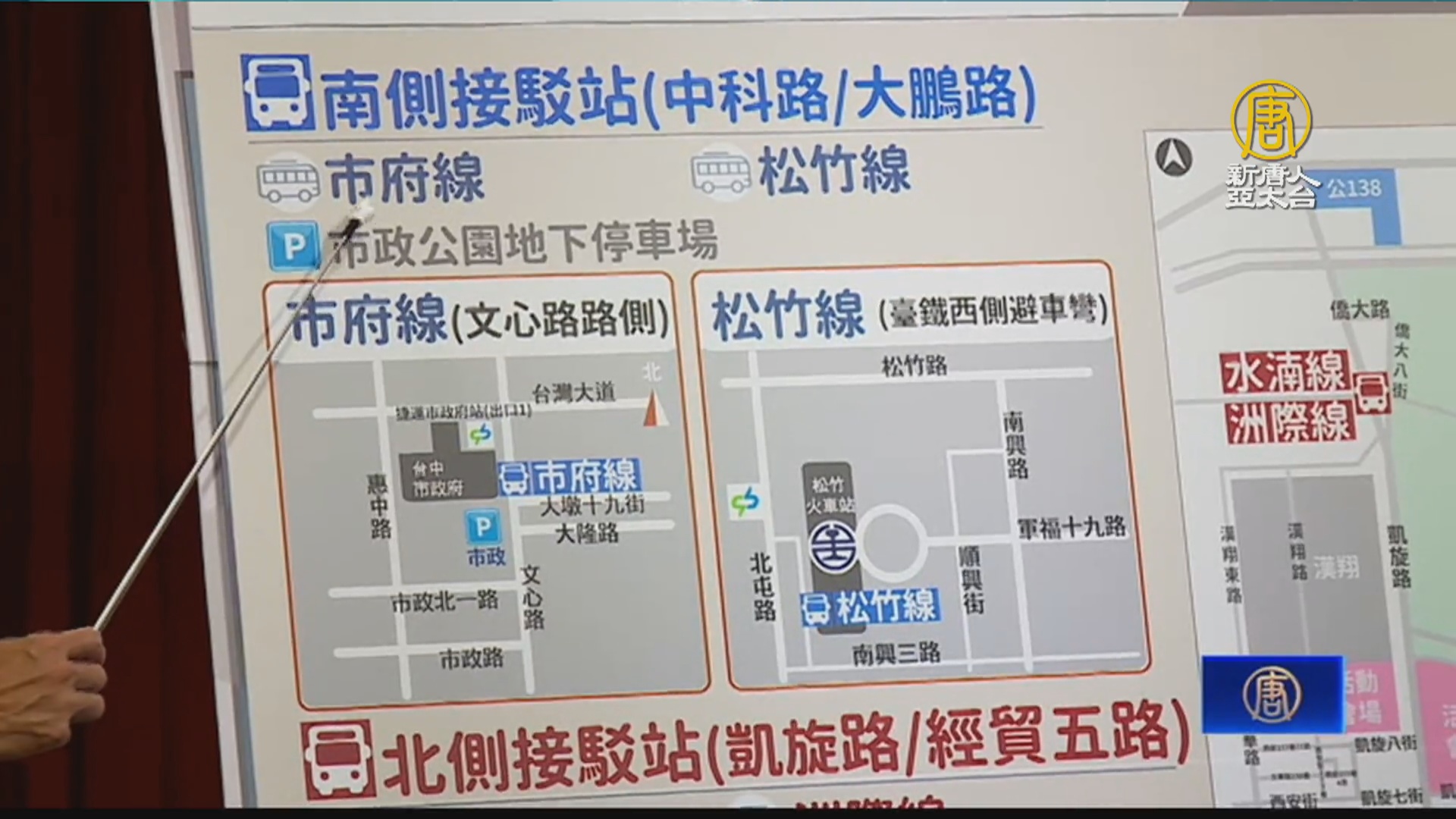 台中市交通局長 葉昭甫:「外地的民眾可能透過台高鐵進到台中,那高鐵進來可以搭乘捷運到我們的相關的市政府站,市政府就備有大量的接駁車;那台鐵的部份我們在松竹線備有接駁車。」