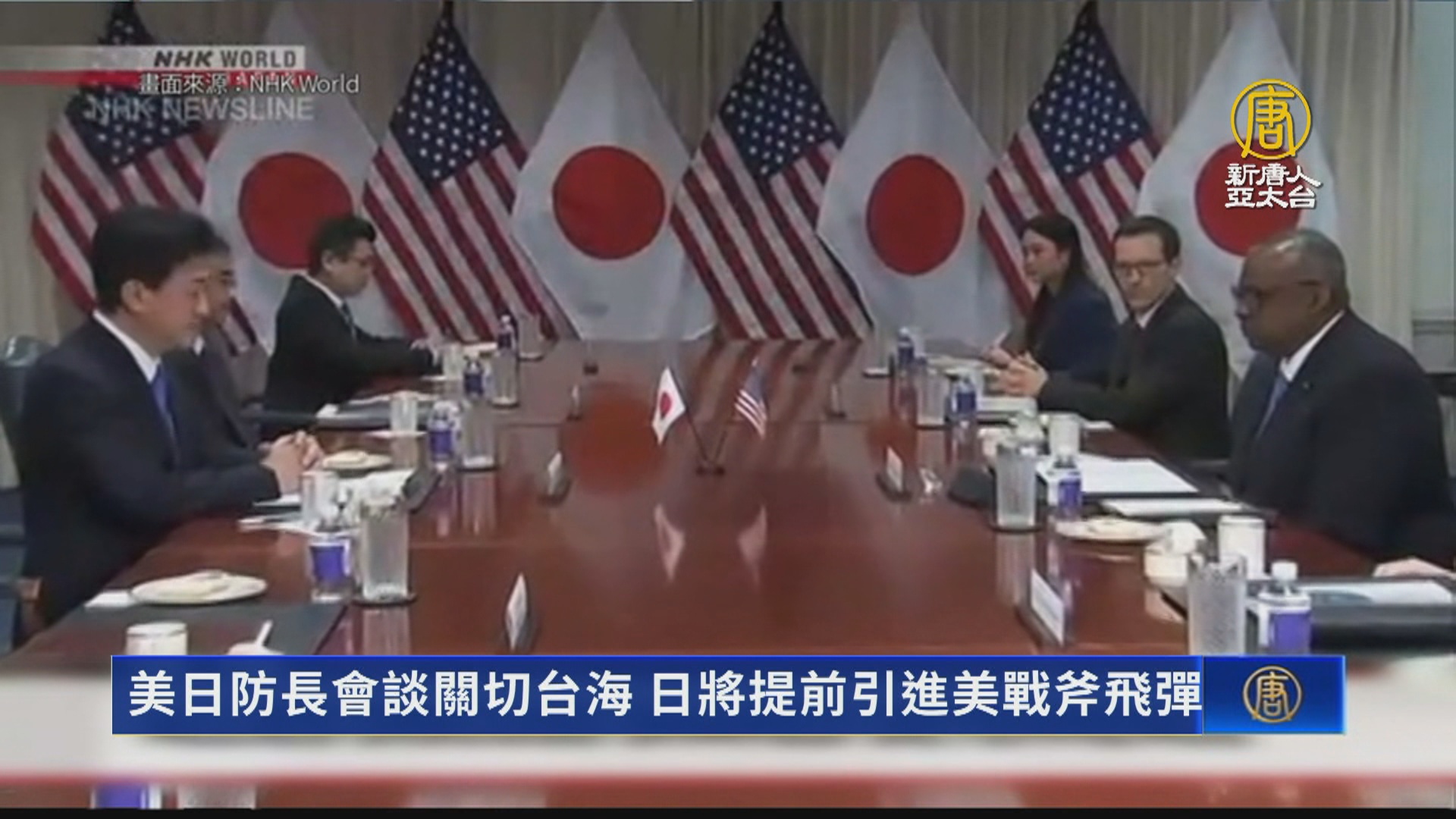 【新唐人亞太台 2023 年 10 月 05 日訊】日本新任防衛大臣木原稔,4日首度與美國國防部長奧斯汀面對面會談。兩國防長重申台灣海峽和平與穩定的重要性。也同意將日本採購美製「戰斧」巡弋飛彈的時程,提前一年到2025年,以提早建立對敵基地的反擊能力。