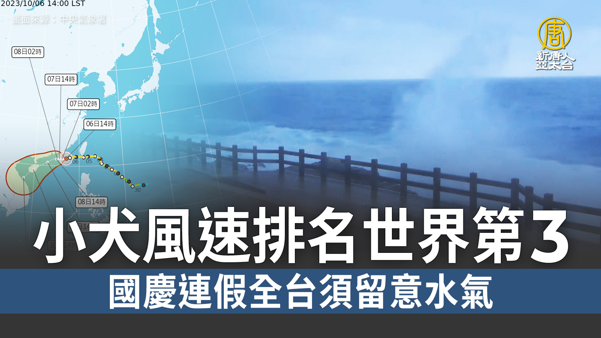 2023-10-03 07:58:39早安新唐人先帶您關心,中度颱風小犬的最新動態,中央氣象署昨夜已經發布颱風海上警報,預計週三到週五對台灣影響最劇烈,花東、恆春半島首當其衝,直到週六才會明顯遠離。來看到氣象局的最新說明。