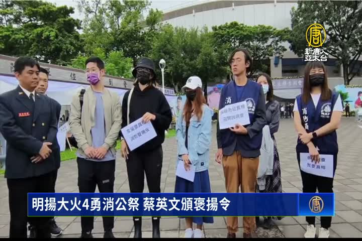 【新唐人亞太台 2023 年 10 月 06 日訊】歡迎回來。屏東明揚工廠大火造成4名勇消殉職,6名員工罹難,超過百人輕重傷。今天(6日)上午11點舉行聯合公祭典禮,總統蔡英文也親自南下,向家屬頒授褒揚令。而公祭結束後,屢傳爭議的屏東縣消防局長許美雪,也以個人規劃為由,請辭獲准。