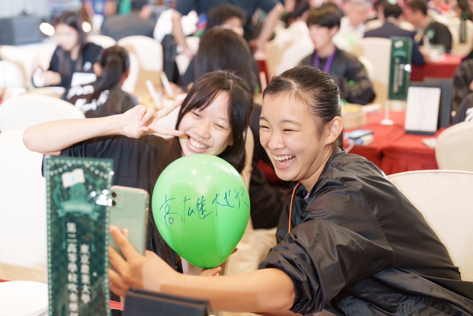 日本學生一抵達派對現場就有高雄熊驚喜現身相迎,啦啦隊及熱舞表演瞬間炒熱派對氣氛,高雄高商學生也參與晚宴與日本學生交流同樂,現場玩起吹氣球PK任務、九宮格戳戳樂以及夜市乒乓球遊戲,都讓台日學生建立默契迅速破冰,現場笑聲不斷。