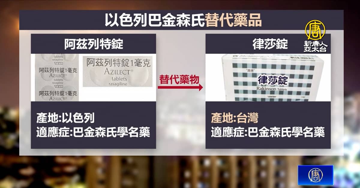 目前台灣各醫院、藥局從以色列直接進口的藥品市佔率低,以這間藥局來說不到1%,這款巴金森氏學名藥,就有台灣生產的同成份、同劑型、同含量的替代廠牌,醫院處方籤的台灣藥開出率也比以色列的阿茲列特錠高出5倍。